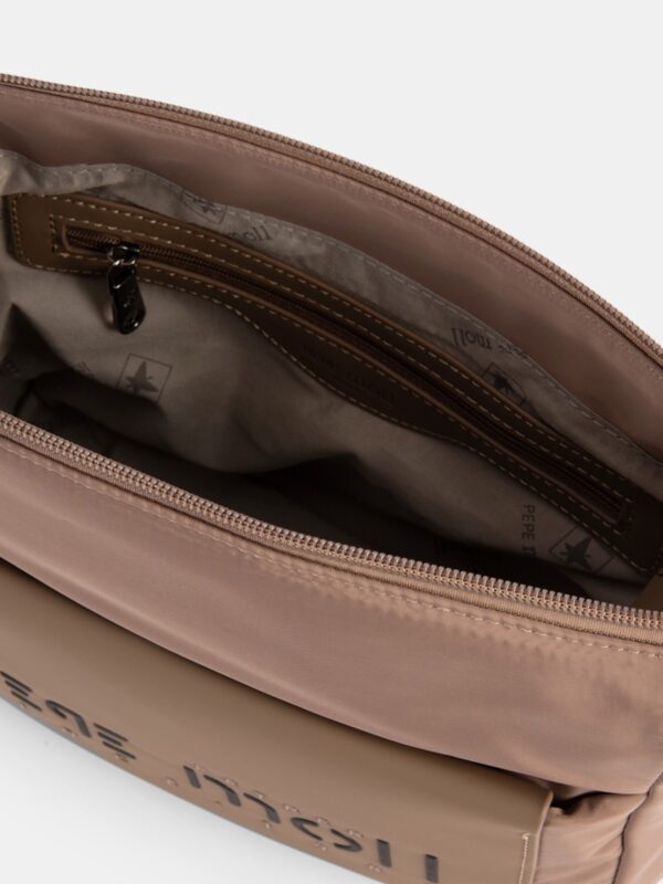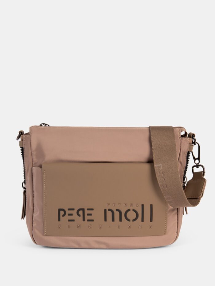 Bolso bandolera, de la firma Pepe Moll, fabricado en nylon con detalle frontal de pu. Modelo de cierre superior con cremallera y diseñado con cremalleras en los laterales para ampliar su capacidad. También cuenta dos bolsillos exteriores, uno delante con cierre magnético, y otro detrás cerrado con cremallera. En el interior encontrarás dos bolsillos, uno con cremallera, para guardar con seguridad tus imprescindibles.