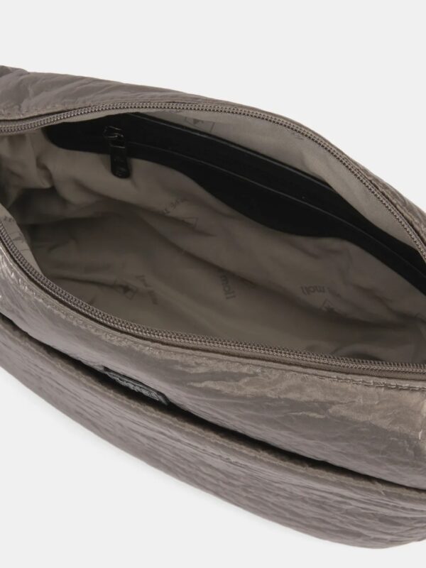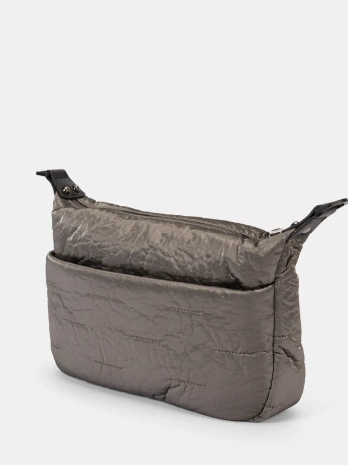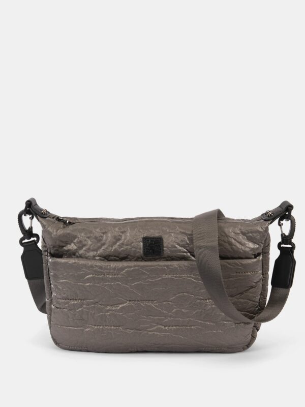 Bolso estilo bandolera de la firma Pepe Moll de diseño acolchado con textura brillante. Modelo de cierre superior con cremallera y diseñado con dos bolsillos exteriores, uno delante y otro detrás, también cerrados. En el interior, forrado con tejido estampado con el logo de Pepe Moll, encontrarás un bolsillo con cremallera para guardar con seguridad tus imprescindibles. Su correa ajustable y extraíble permite llevarlo tanto cruzado como al hombro, adaptándose a tu ritmo y estilo de vida.