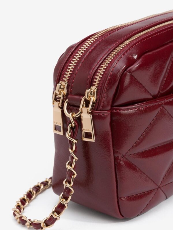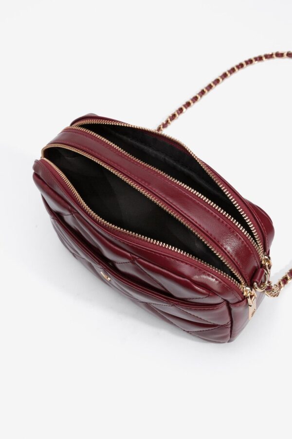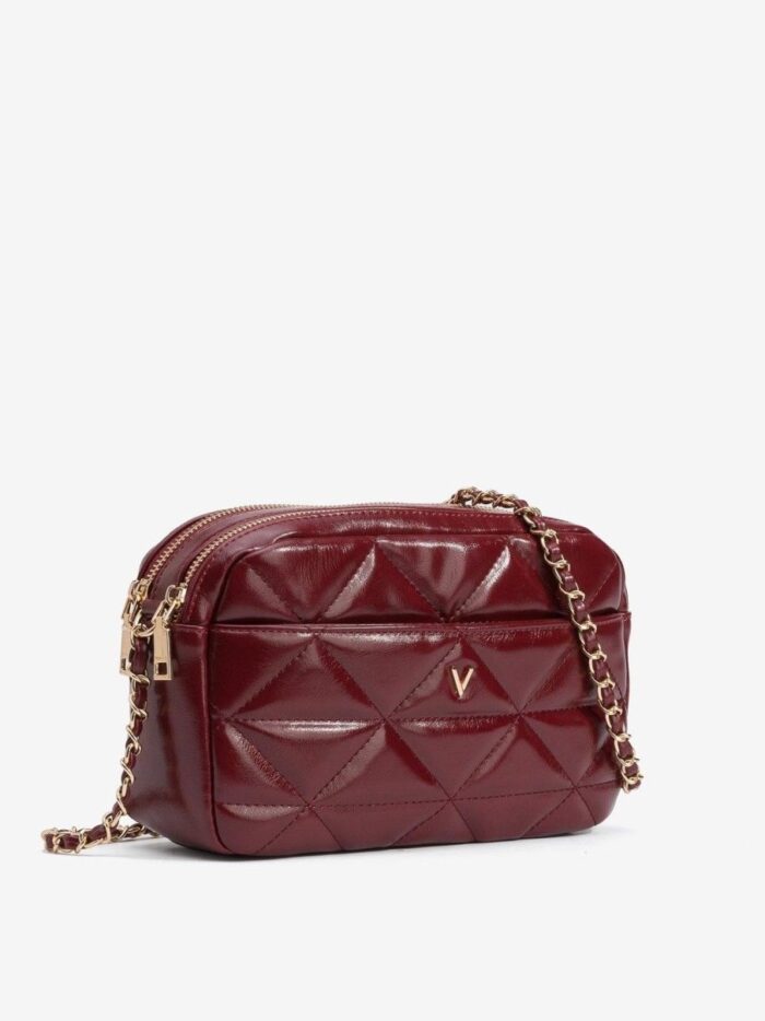 Bolso bandolera, tamaño pequeño, fabricado en sintético efecto charol con diseño geométrico acolchado. Modelo diseñado con dos compartimentos, cerrados con cremallera, y bolsillo frontal. Correa de bandolera combinada con cadena y dispone de bolsillo interior con cremallera.