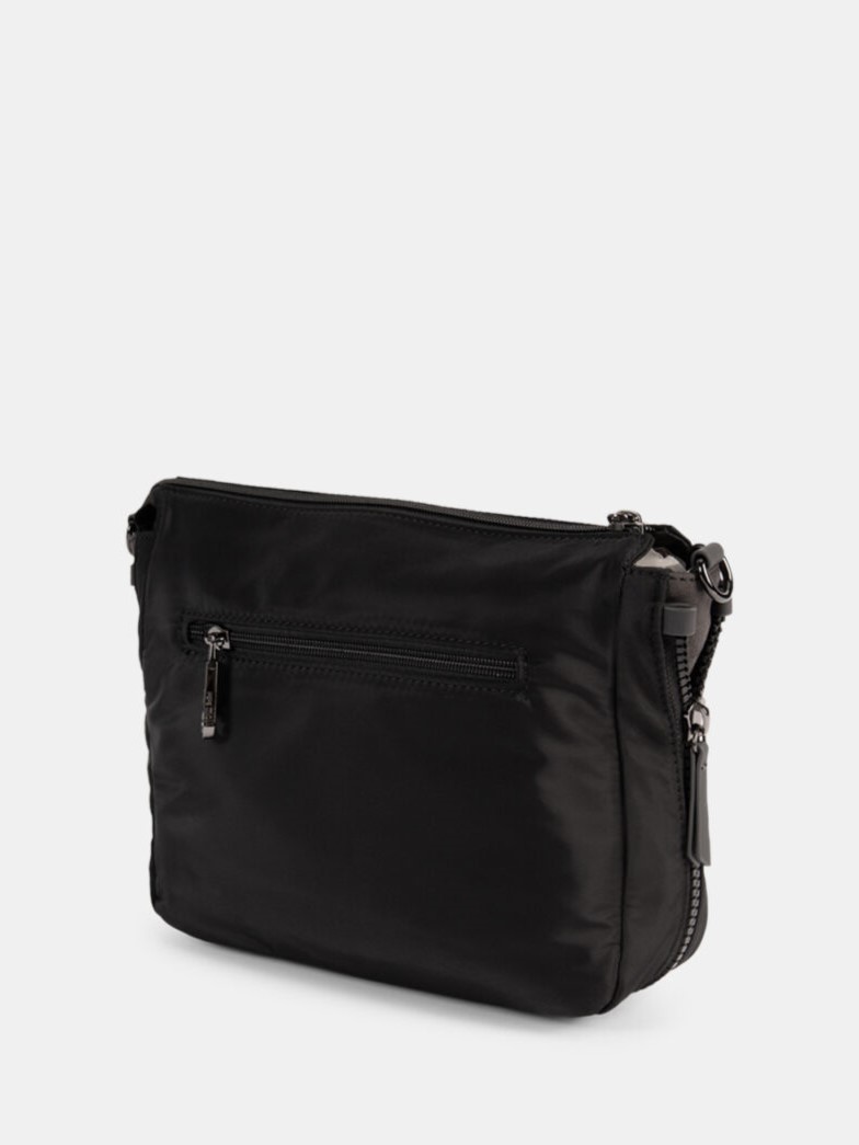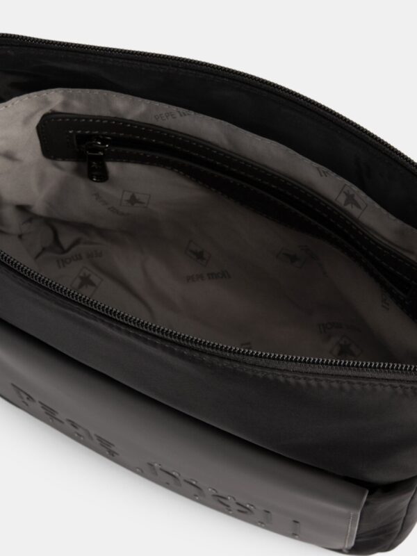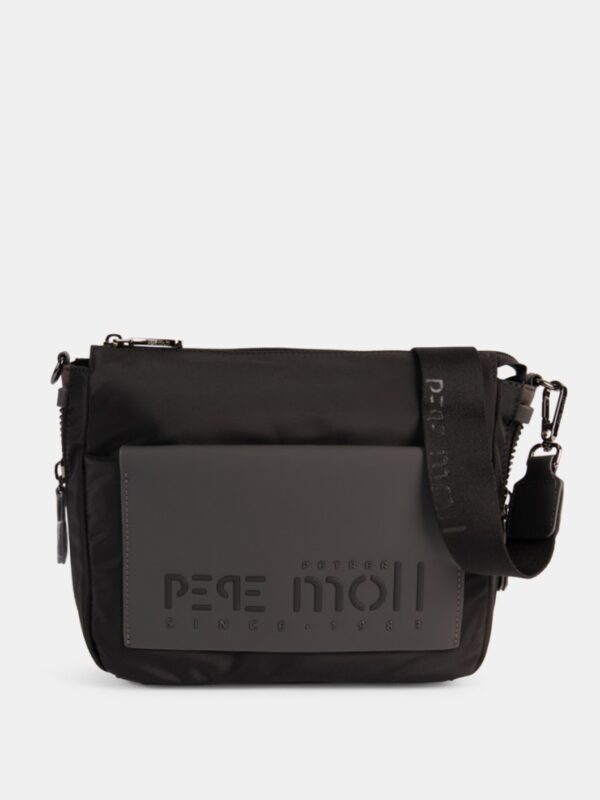 Bolso bandolera, de la firma Pepe Moll, fabricado en nylon con detalle frontal de pu. Modelo de cierre superior con cremallera y diseñado con cremalleras en los laterales para ampliar su capacidad. También cuenta dos bolsillos exteriores, uno delante con cierre magnético, y otro detrás cerrado con cremallera. En el interior encontrarás dos bolsillos, uno con cremallera, para guardar con seguridad tus imprescindibles.