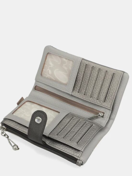 Billetero, tamaño medio-grande, de textura «blanda» y con gran capacidad tanto para billetes y tarjetas por un lado, que se cierra con solapa estrecha de clip, como para monedas, por otro lado, con cierre de cremallera. Modelo ideal para acompañarte dentro del bolso o mochila que elijas y llevar todo lo que necesites totalmente organizado.