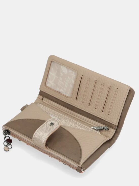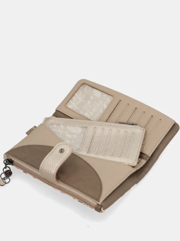 Billetero, de tamaño grande, con gran capacidad tanto para billetes y tarjetas por un lado, que va cerrado con solapa estrecha con clip, como para monedas por otro lado con cierre de cremallera. En su interior dispone de una pieza extraíble, con compartimentos y cremallera, ideal para llevar tarjetas, documentación y dinero. Su tamaño te permite llevar todo lo que necesitas en tu día a día.