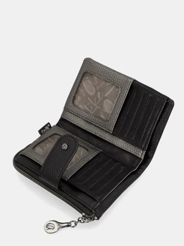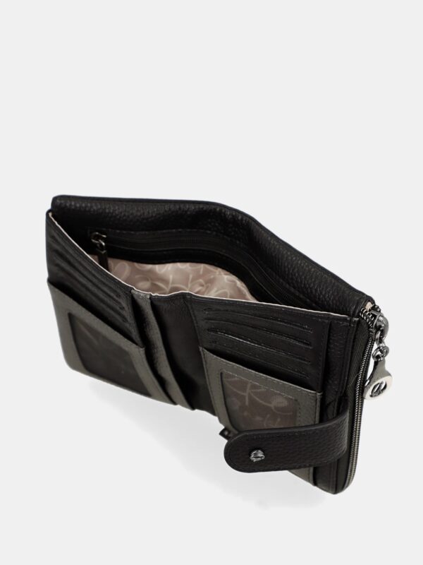 Billetero, tamaño medio, de textura «blanda» y con gran capacidad tanto para billetes y tarjetas por un lado, que se cierra con solapa estrecha de clip, como para monedas, por otro lado, con cierre de cremallera. Modelo de tamaño y capacidad ideales para acompañarte dentro del bolso o mochila que elijas y llevar todo lo que necesites totalmente organizado.
