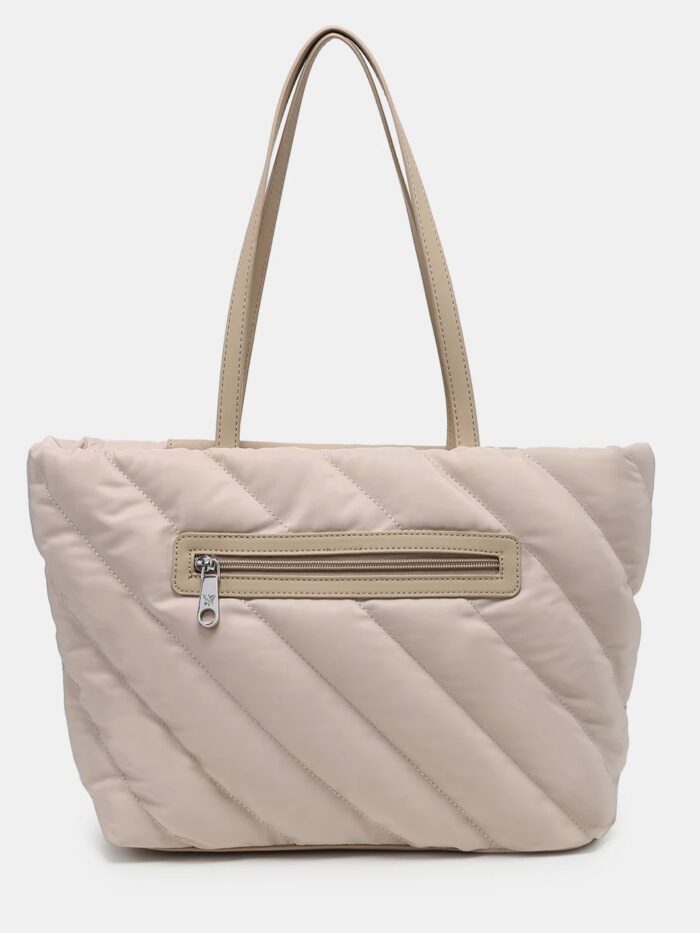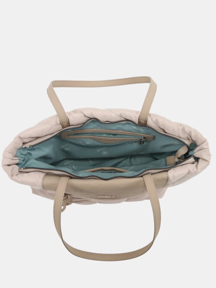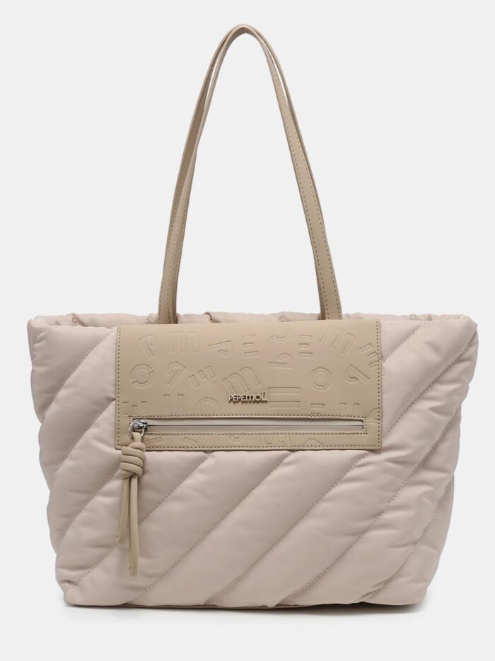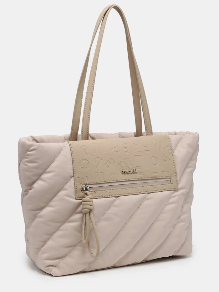 Bolso tamaño grande, de la firma Pepe Moll, fabricado en tejido de textura acolchada y pensado para quienes buscan amplitud y ligereza. Modelo diseñado con cierre superior de cremallera y dos asa amplias que permite llevarlo al hombro con total comodidad. Cuenta con dos bolsillo exteriores, uno por delante y otro en la trasera, y dos mas en su interior. Por su forma es ideal para disfrutarlo todos los días con cualquier look.