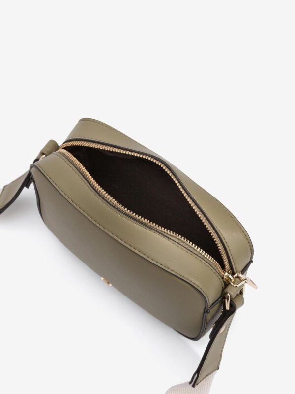 Bolso de tamaño pequeño y diseño en liso con detalle de logotipo de la marca en metal por la parte de delante. Modelo con cierre superior de cremallera y correa larga ancha, de tejido de saco, para llevar de bandolera.