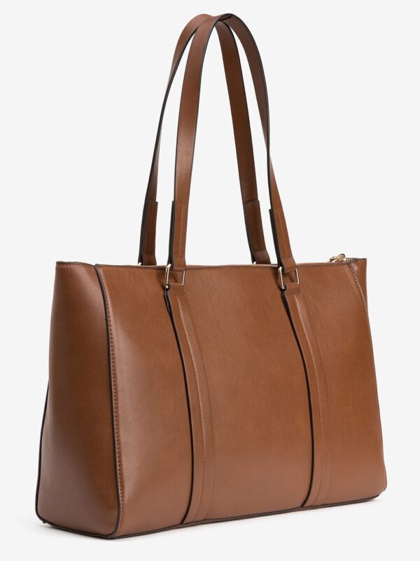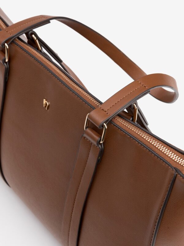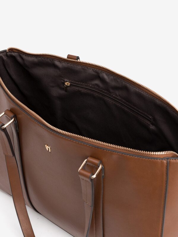 Bolso Shopper, tamaño grande, con asas amplias que permiten llevarlo cómodo al hombro, y cierre superior con cremallera. Detalles de anilla metálica en la base de las asas y diseñado con un bolsillo interior cerrado con cremallera.