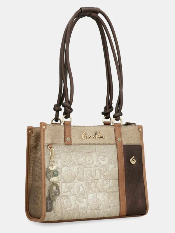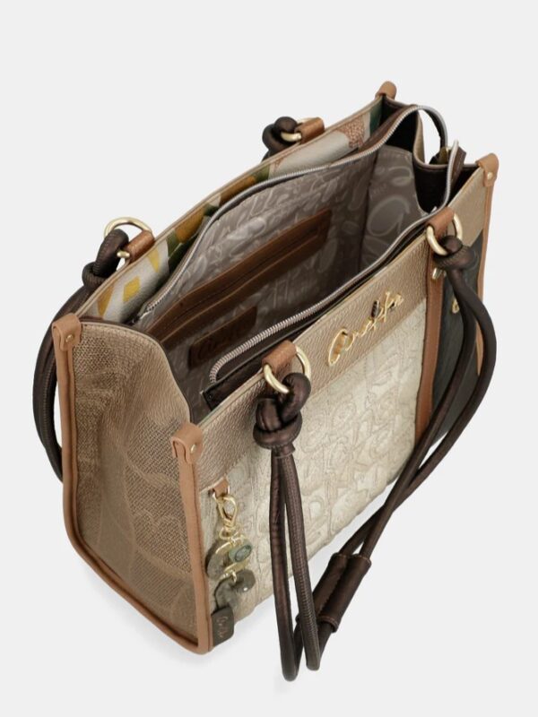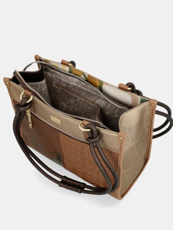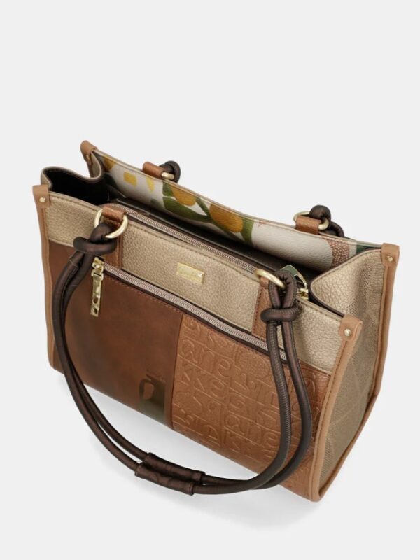 Bolso de tamaño medio, con cierre superior de cremallera y diseñado con dos asas amplias para lucir en el hombro. Dispone de un bolsillos exterior, detrás, cerrado con cremallera y tres más en su interior para llevar organizadas esas pequeñas cosas que necesitas en el día a día.