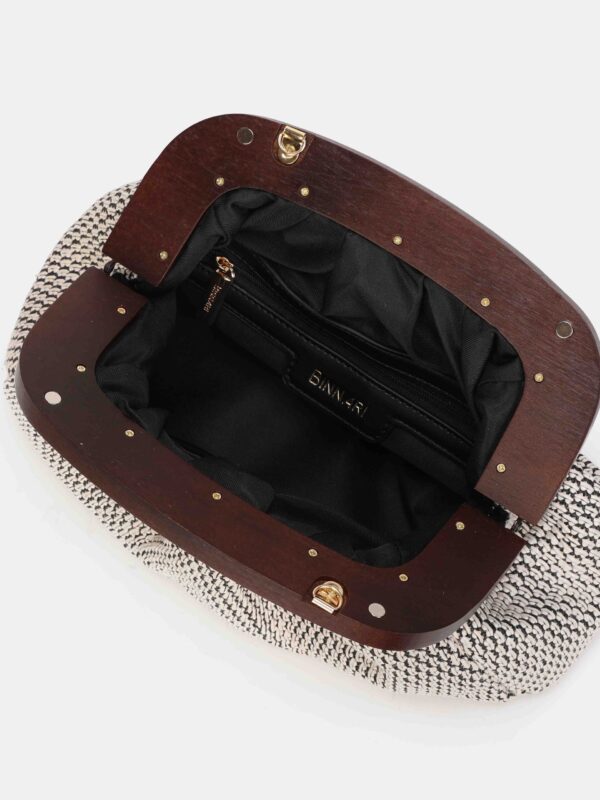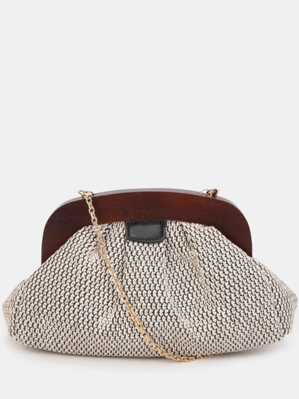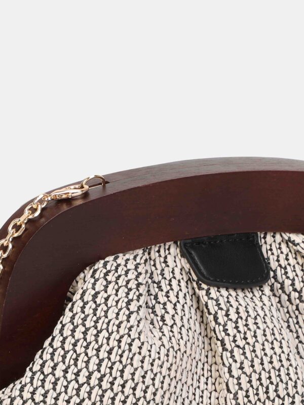 Bolso de mano, tipo clutch, de la firma Binnari. Modelo confeccionado en rafia natural y diseñado con cierre de imán. Incluye una cadena en color dorado, para llevarlo de bandolera, y en su interior dispone de dos bolsillos para separar lo que necesitas tener mas a mano.