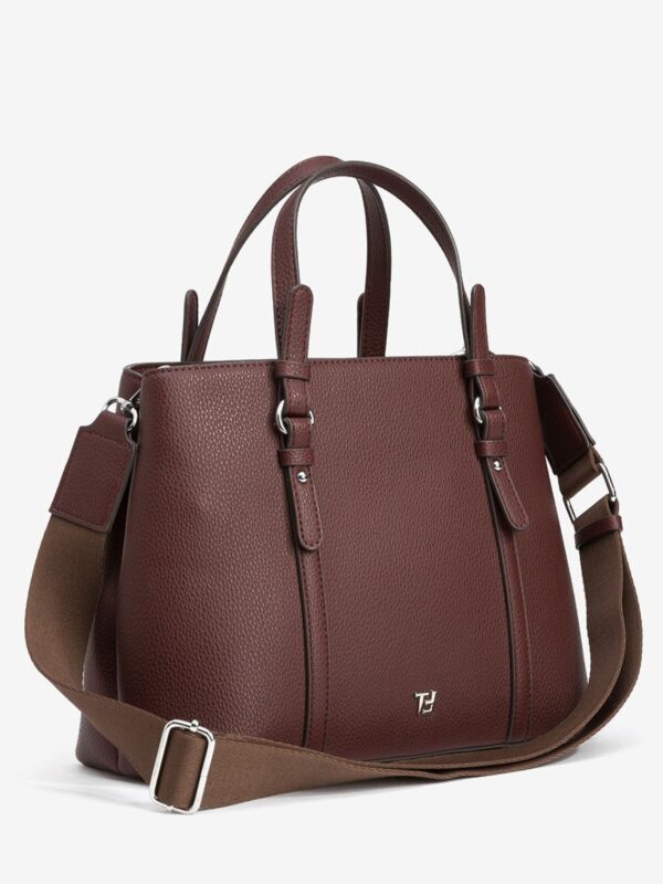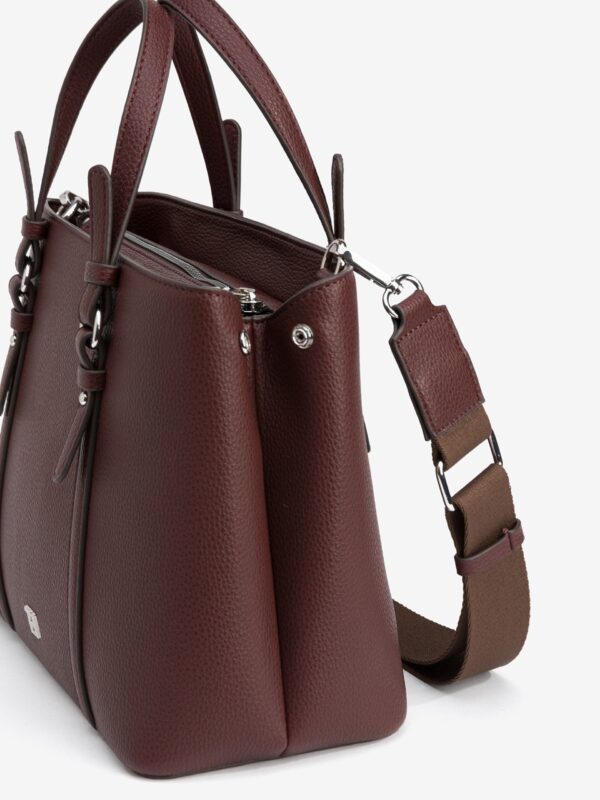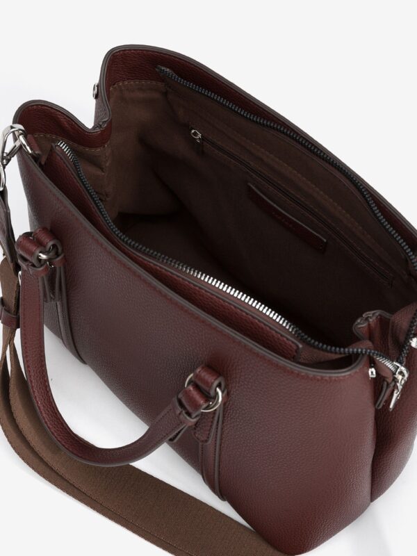 Bolso city, tamaño medio, efecto piel grabada, con cierre superior de cremallera y asas cortas para llevar de mano. También dispone de una correa larga, ajustable y desmontable, para lucir de bandolera. En su interior encontrarás un bolsillo cerrado con cremallera.