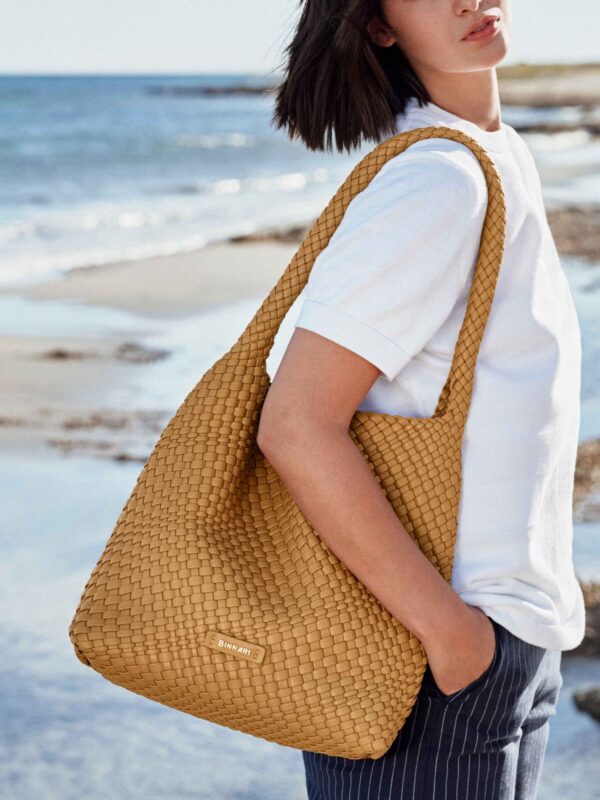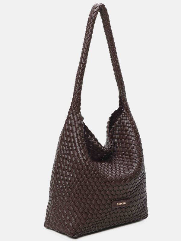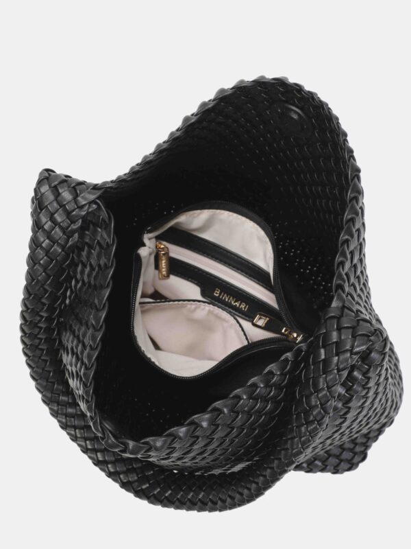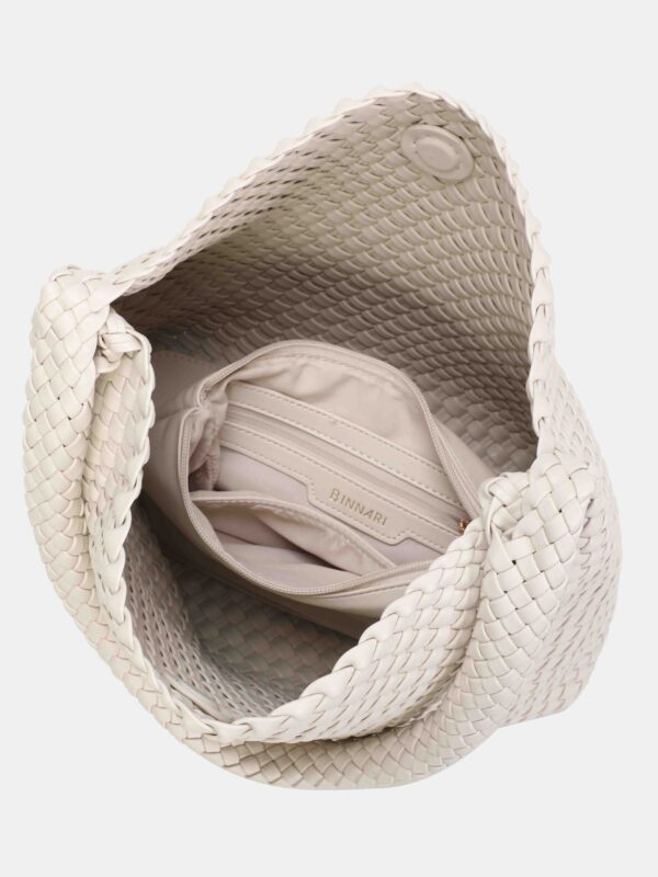 Bolso tamaño grande de la firma Binnari. Modelo trenzado que es un auténtico «top ventas» gracias a su diseño cómodo, ligero y súper versátil. Su asa larga permite llevarlo al hombro con total comodidad y en su interior encontramos un bolsito, independiente y extraíble, donde podemos llevar lo mas importante. Su cierre es con un fuerte botón magnético forrado al tono del bolso.