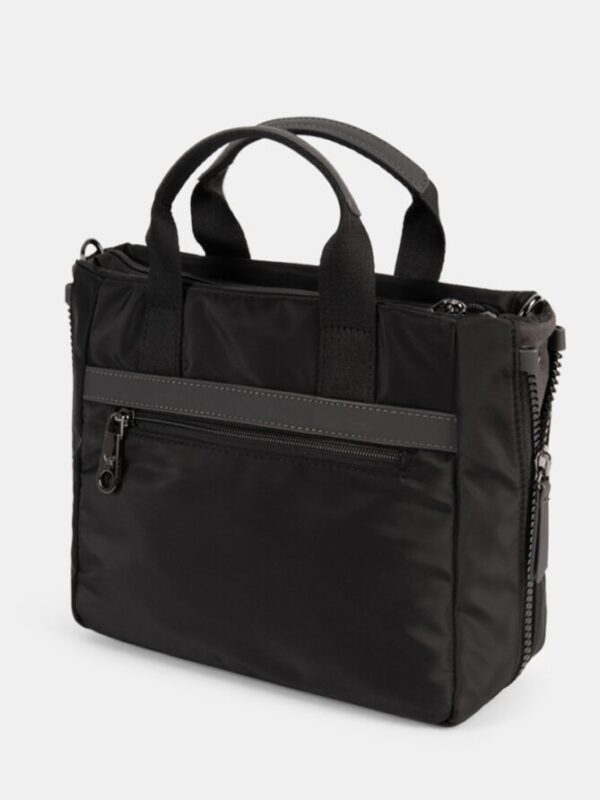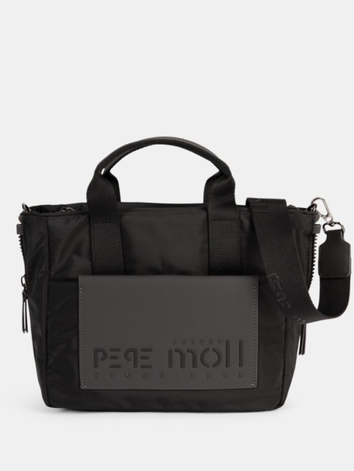 Bolso tamaño medio, de la firma Pepe Moll, fabricado en nylon con detalle frontal de pu. Modelo de cierre superior con cremallera y diseñado con cremalleras en los laterales para ampliar su capacidad. También cuenta dos bolsillos exteriores, uno delante con cierre magnético, y otro detrás cerrado con cremallera. En el interior encontrarás dos bolsillos, uno con cremallera, para guardar con seguridad tus imprescindibles. Incluye correa larga, ajustable y extraíble, que permite llevarlo tanto cruzado como al hombro.
