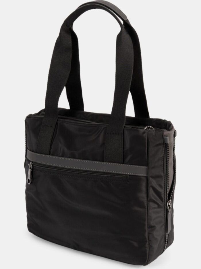 Bolso tamaño grande, de la firma Pepe Moll, fabricado en nylon con detalle frontal de pu. Modelo de cierre superior con cremallera y diseñado con cremalleras en los laterales para ampliar su capacidad. También cuenta dos bolsillos exteriores, uno delante con cierre magnético, y otro detrás cerrado con cremallera. En el interior encontrarás dos bolsillos, uno con cremallera, para guardar con seguridad tus imprescindibles. Incluye correa larga, ajustable y extraíble, que permite llevarlo tanto cruzado como al hombro.