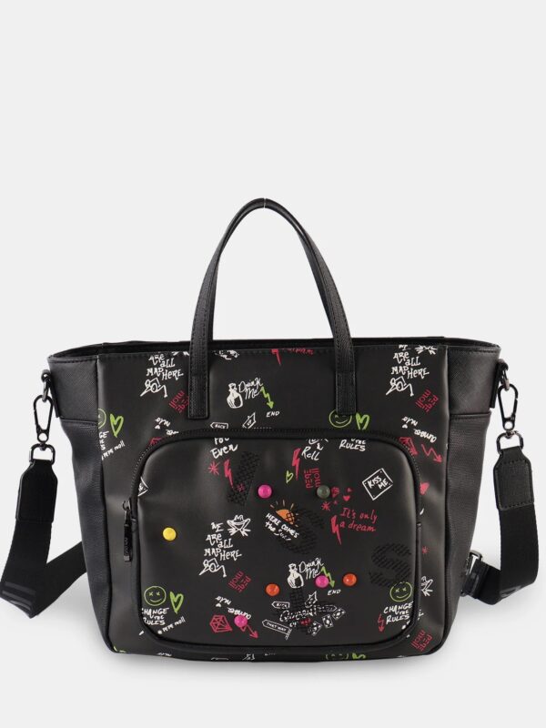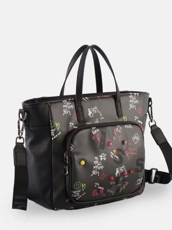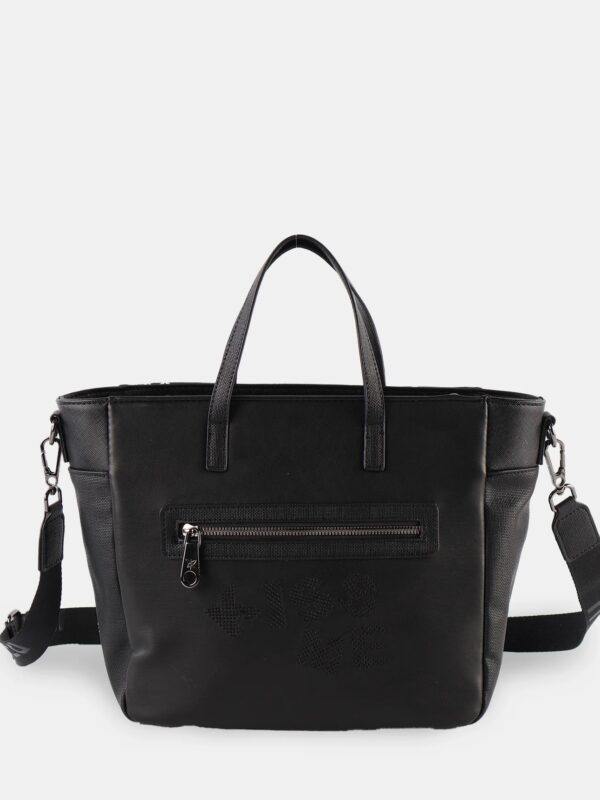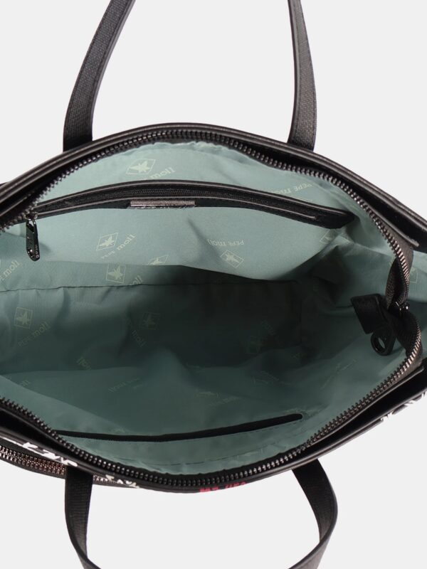 Bolso de mano de la firma Pepe Moll de diseño amplio y versátil pensado para tu día a día. Su diseño incorpora doble asa de mano para un agarre cómodo y una bandolera extraíble que te permite llevarlo también al hombro o cruzado. Su compartimento principal con cierre superior mantiene todo protegido, mientras que los bolsillos frontal y trasero añaden un extra de organización para que tengas siempre a mano lo que más utilizas.