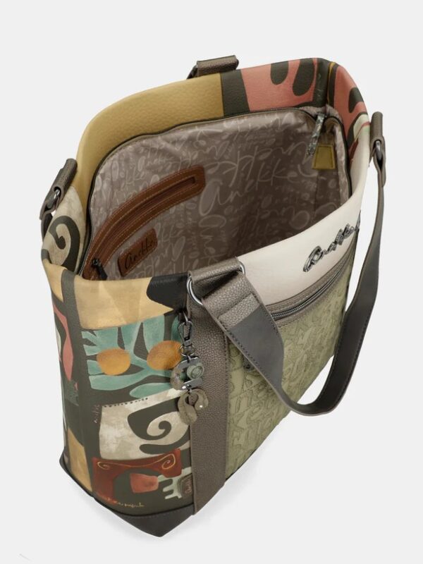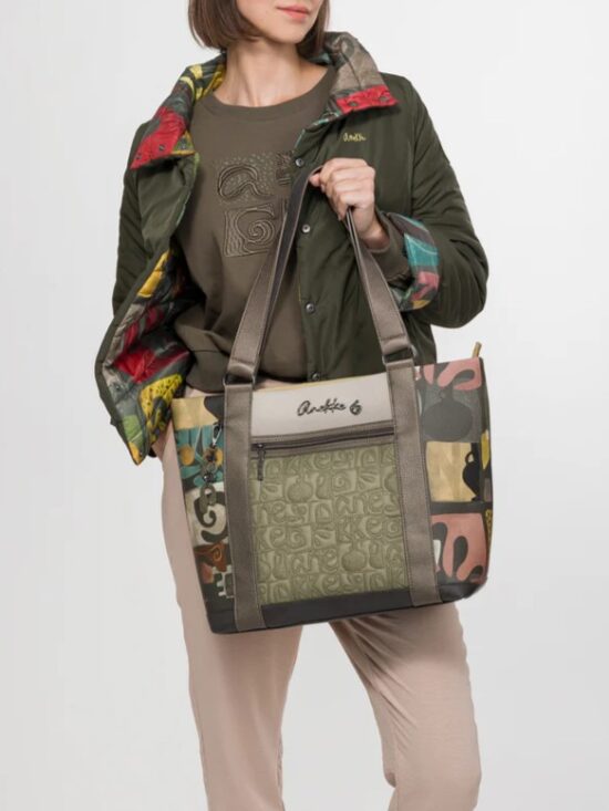 Bolso tipo tote, de tamaño grande, con cierre superior de cremallera y diseñado con dos asas amplias para lucir en el hombro. Dispone de dos bolsillos exteriores, uno delante y otro detrás, cerrados con cremallera y tres más en su interior para llevar organizadas esas pequeñas cosas que necesitas en el día a día.