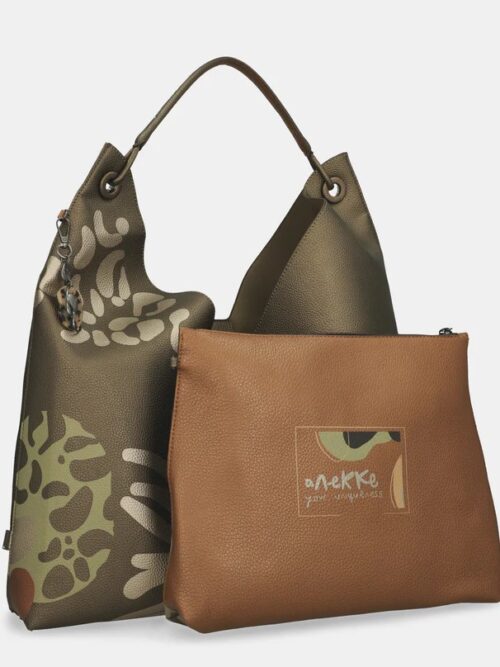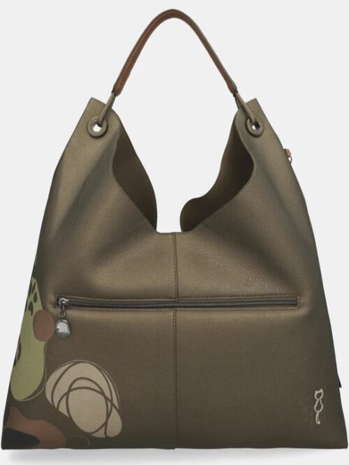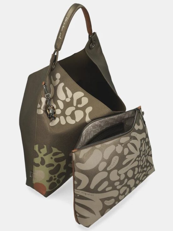 Bolso extra grande de asa corta y cierre de botón de imán. En la trasera encontramos un bolsillo amplio cerrado con cremallera y en el interior dispone de un bolso, tipo cartera, que es extraíble y que cuenta con bolsillos dentro para organizar lo necesario en el día a día. Diseño vanguardista que enamorará las amantes de los bolsos grandes.