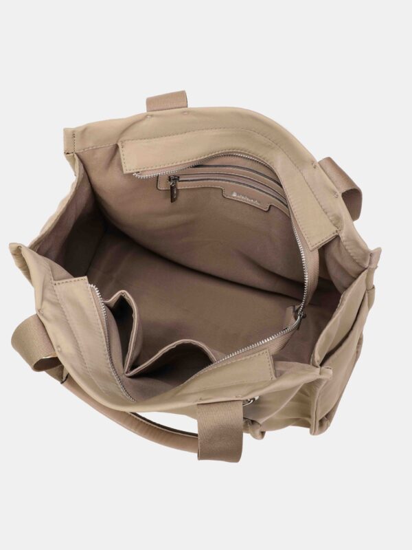 Bolso, tamaño medio-grande, fabricado en nylon resistente y diseñado con dos asas cortas para llevarlo cómodamente al hombro o en el brazo. Incluye una correa larga, regulable y extraíble, para usarlo también de bandolera. Modelo que destaca por su funcionalidad gracias a sus múltiples bolsillos exteriores, delante, detrás, y en los laterales, además de tres mas en su interior. Un modelo cómodo, moderno y perfecto para el día a día.