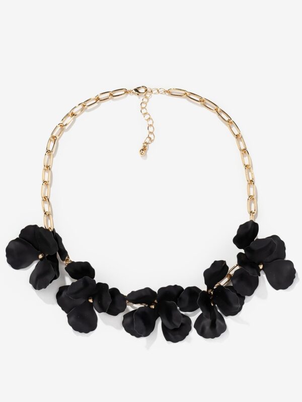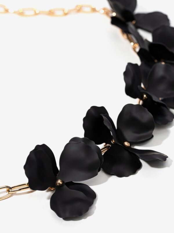 Collar de cadena de eslabones gruesos, en acero dorado, con intercalo de flores negras en relieve. Modelo con cierre ajustable de mosquetón .