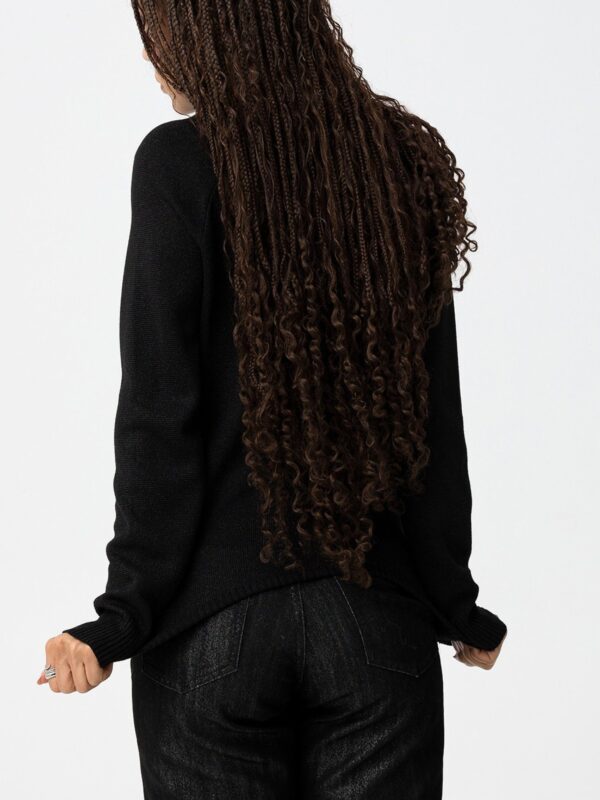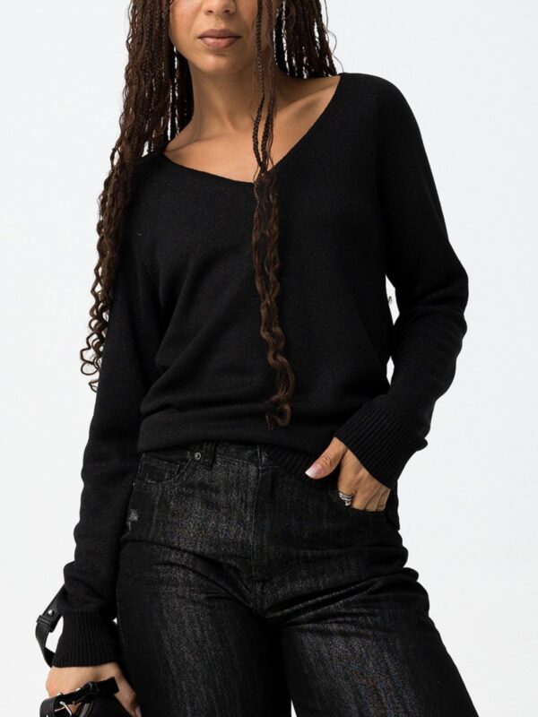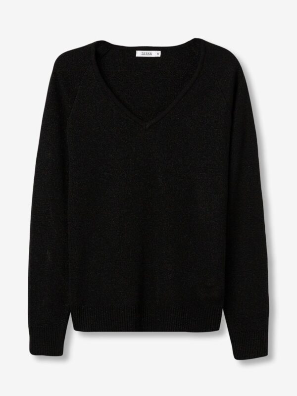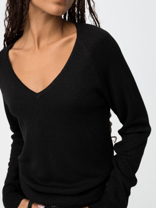 Jersey, de corte slim fit, confeccionado en tejido con incrustación de hilo metálico dorado. Modelo con escote en pico, manga larga y acabados de canalé en cintura y puños.
