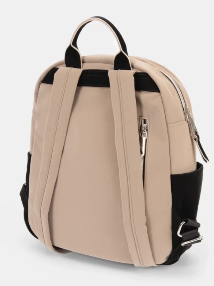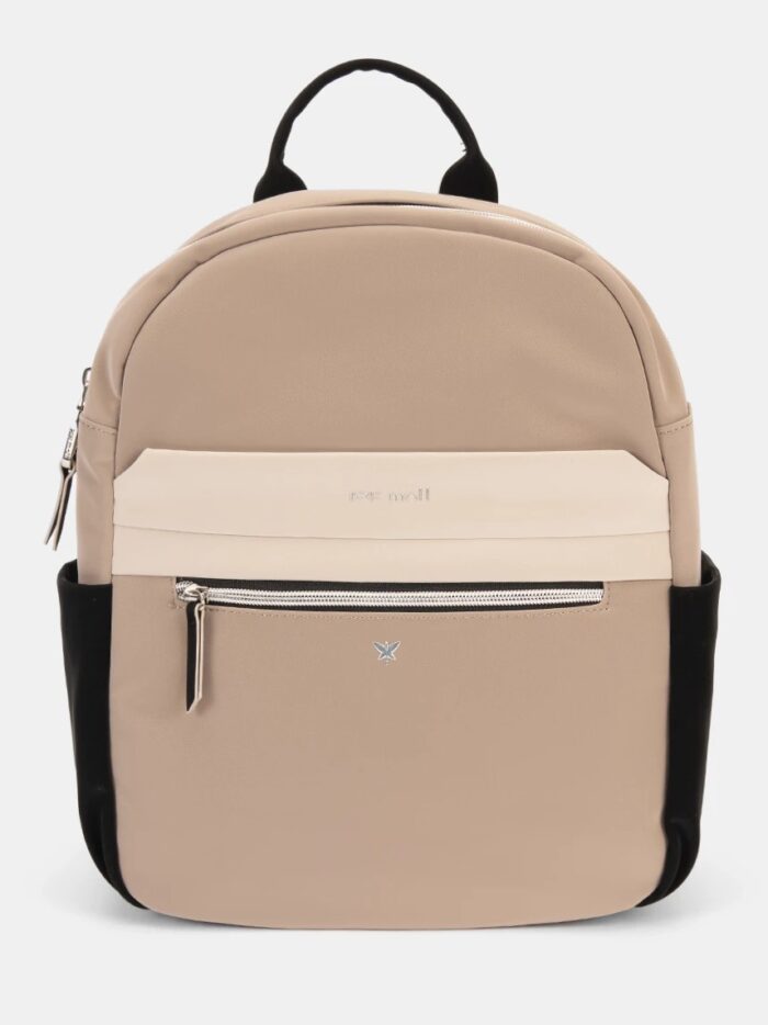 Mochila de tamaño medio, de la firma Pepe Moll, con cierre superior de cremallera. En su interior, incluye dos bolsillos que ayudan a mantener tus objetos bien colocados. Además, cuenta con dos bolsillos exteriores, uno delante y otro detrás, cerrados con cremallera, perfecto para acceder fácilmente a lo que más usas, como el móvil o las llaves. Las asas son regulables para ajustarse a tu altura y estilo, y también incluye una asa superior para poder llevarla en la mano cuando lo necesites.
