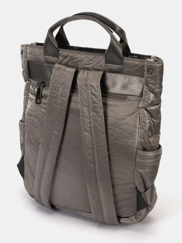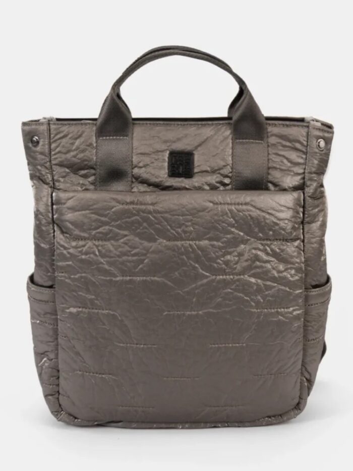 Mochila de la firma Pepe Moll de diseño rectangular y acolchado diseñada con dos correas ajustables para llevarla cómodamente a la espalda y dos asas de mano cortas que aportan versatilidad a la hora de llevarla. Cuenta con dos bolsillos exteriores con cierre, uno frontal y otro trasero, además de dos, mas pequeños, en los laterales. En el interior encontrarás un espacio bien aprovechado, forrado con tejido estampado con el logo de la marca, e incluye un bolsillo con cremallera.