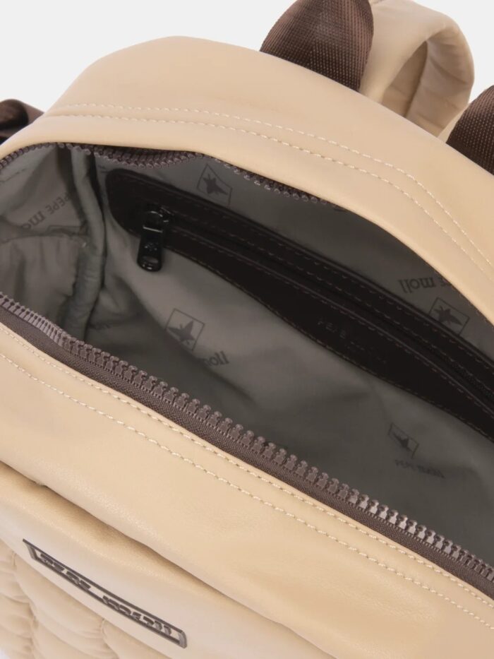 Mochila tamaño medio, de la firma Pepe Moll, de diseño acolchado con cierre superior de cremallera. En su interior dispone de dos bolsillos organizadores que ayudan a mantener tus objetos bien colocados. Además, cuenta con dos bolsillos exteriores, uno por delante y otro en la trasera, con cremallera, perfecto para acceder fácilmente a lo que más usas, como el móvil o las llaves. Las asas son regulables para ajustarse a tu altura y estilo, y también incluye una asa superior para poder llevarla en la mano cuando lo necesites.