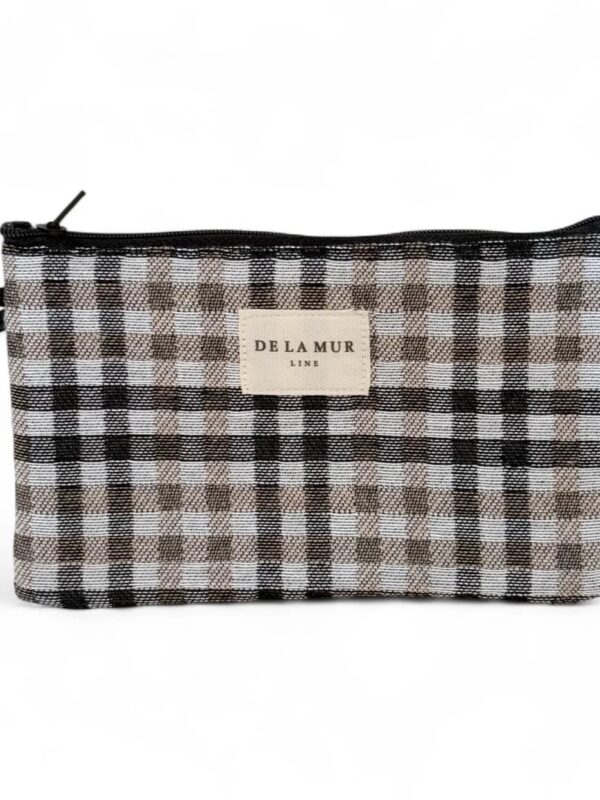 Monedero, tamaño medio, con cierre superior con cremallera. Modelo confeccionado con tejido grueso de jacquard con estampado a cuadros de color beige y negro. Ideal para llevar cualquier cosita y no perderla dentro del bolso como pintalabios, tiritas, pastillas, etc.. Confeccionado con telas nacionales.