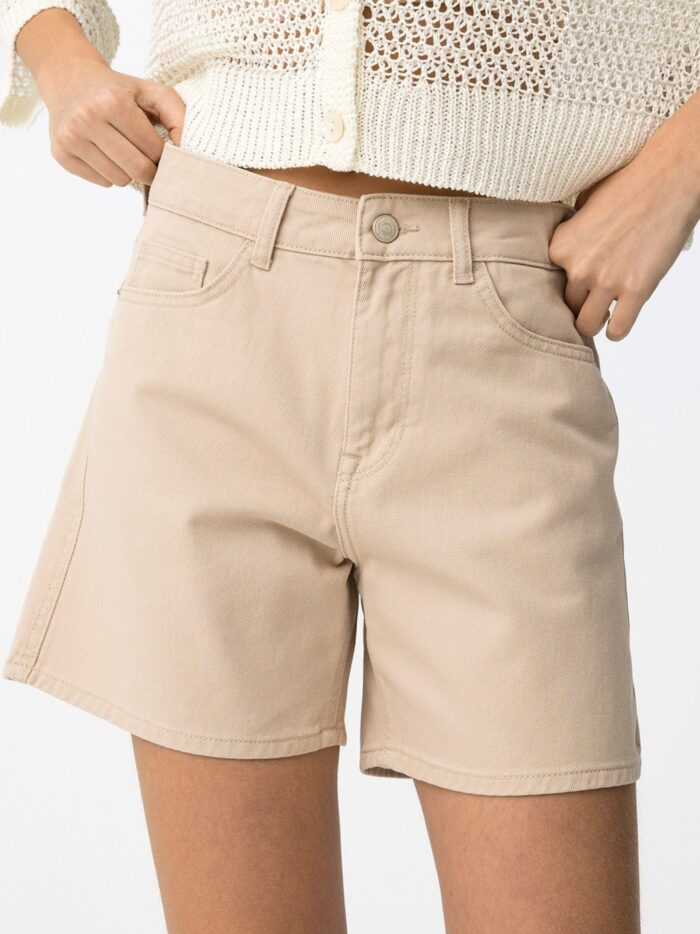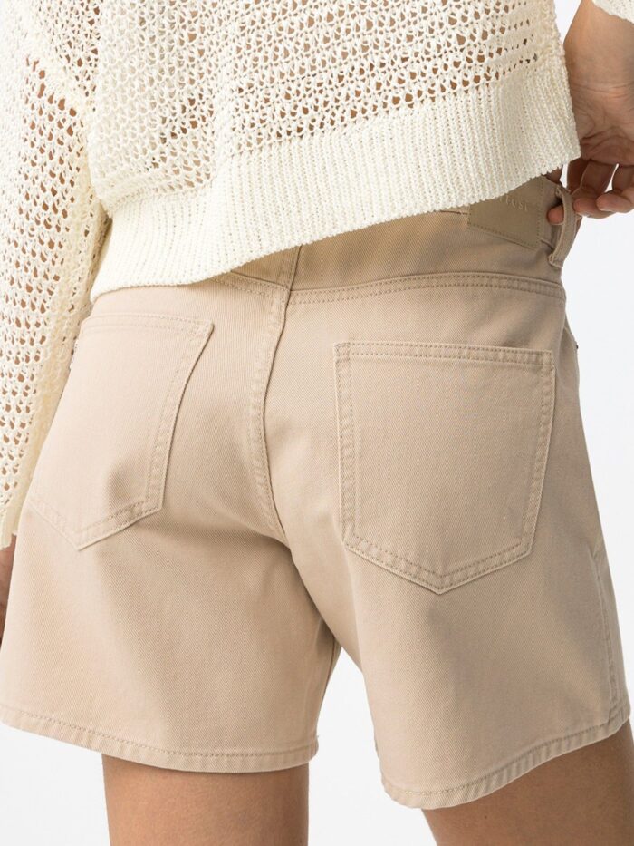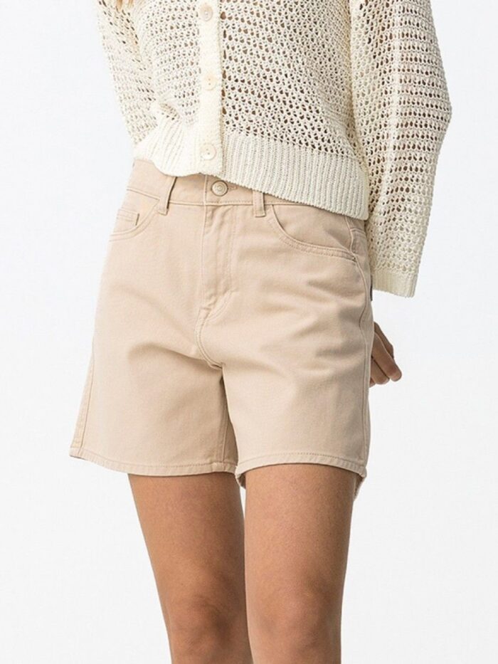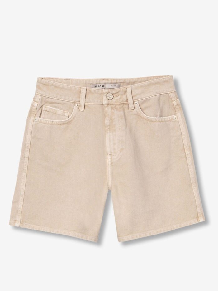 Pantalón corto, en color beige, de la marca Tiffosi. Modelo confeccionado en tejido vaquero y diseñado con cinco bolsillos, corte regular y cintura de talle medio.