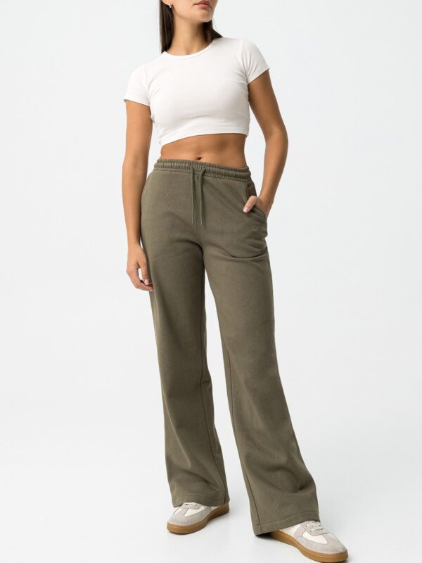 Pantalón de corte recto y pierna ancha confeccionado en algodón. Modelo de tiro medio con cintura elástica y cordón para ajustar al gusto. Cuenta con bolsillos laterales y luce bordado en uno de ellos.