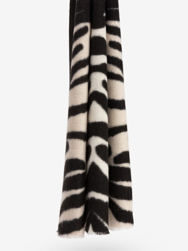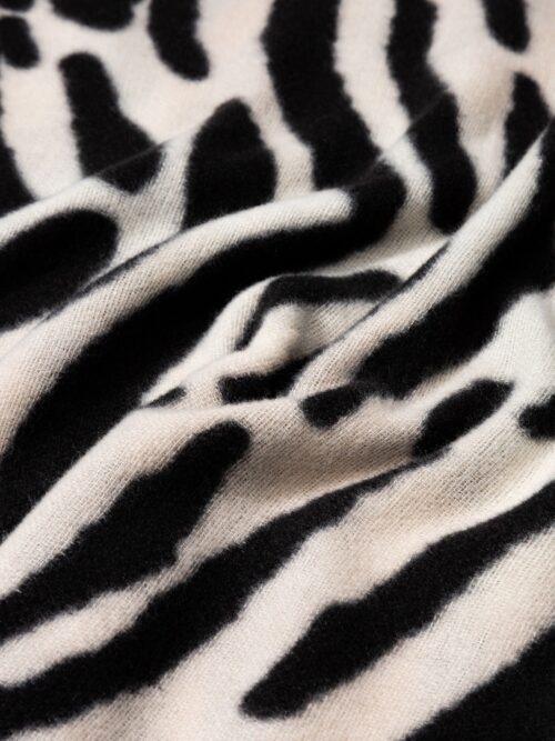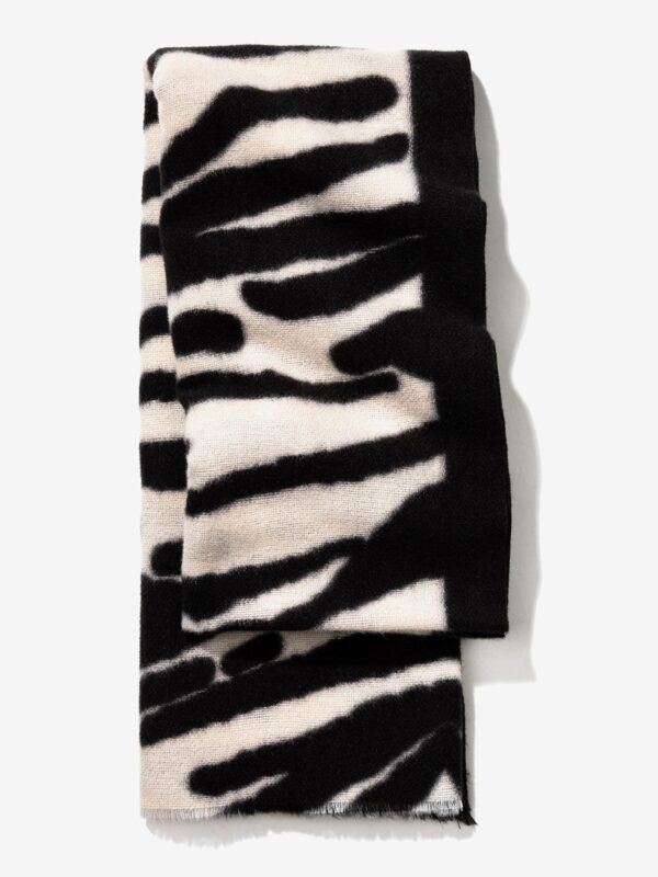 Pasmina rectangular, de estampación de cebra, con textura afelpada y acabado desflecado.