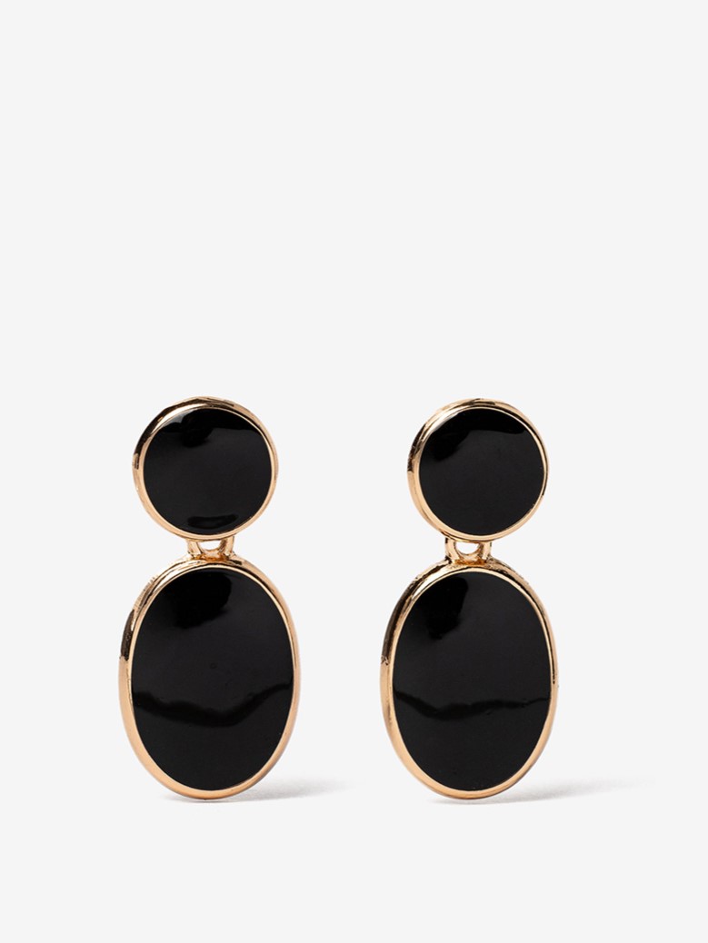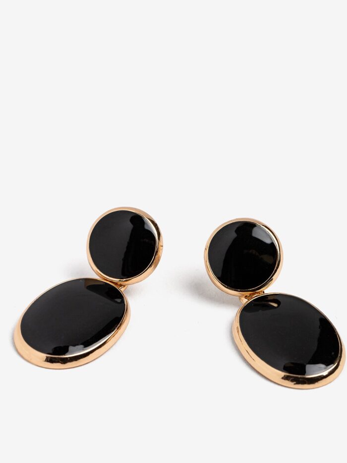 Pendientes, tamaño medio (3 cm.), con el contorno dorado y piedras negras ovaladas. Modelo de diseño elegante y contemporáneo para un estilo sofisticado.