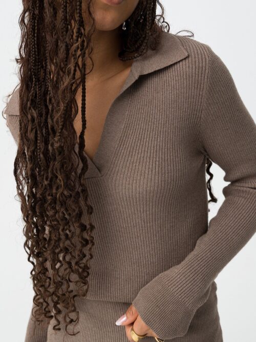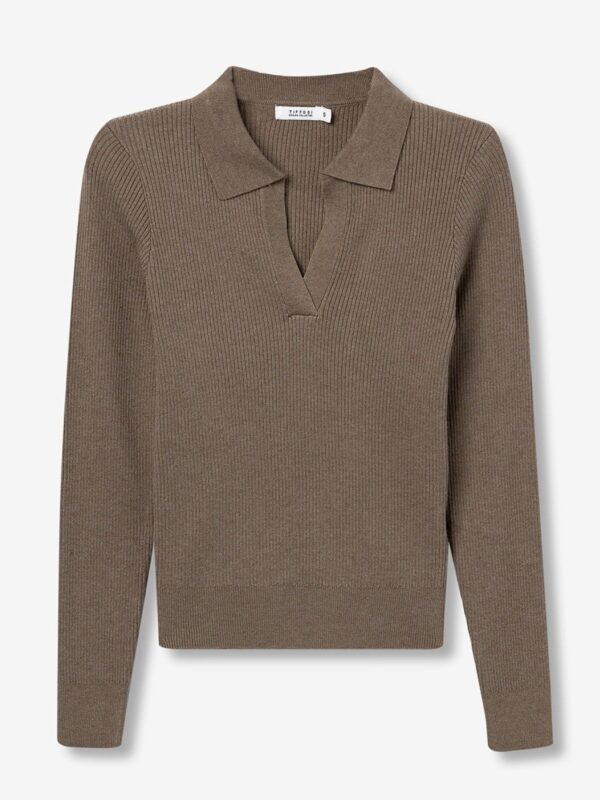 Jersey, tipo polo, de corte super slim fit (muy ajustado) y confeccionado en punto canalé. Modelo con cuello camisero, de escote en pico, y manga larga.