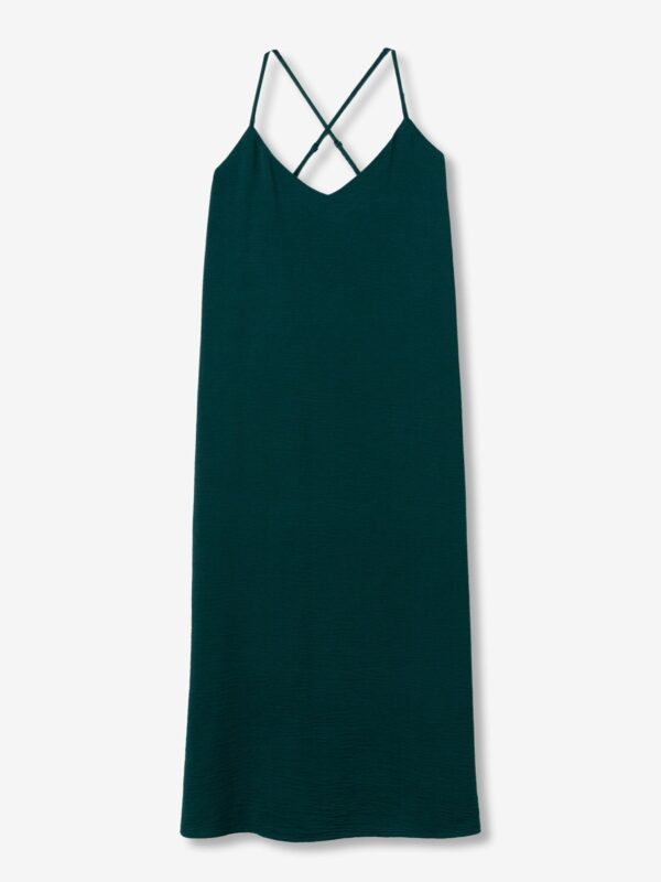 Vestido midi, de corte recto, diseñado con tirantes regulables cruzados y con elástico en la espalda. Modelo de corte fluido con aberturas laterales en el bajo. Su diseño, fresco y cómodo, lo hace ideal tanto para las cualquier evento nocturno como para lucirlo de día.